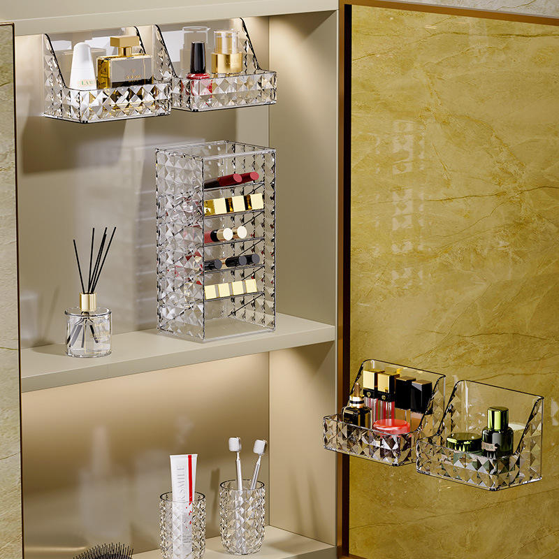 塑料化妆存储盒带有可和调节的分隔层,允许您根据需要定制空间。分隔层的灵活性使其能够轻松容纳各种化妆品,从小刷子到高瓶子,提供定制的解决方案。