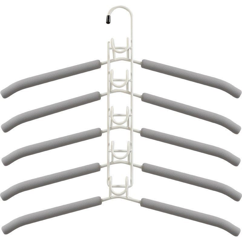 这款五层衣架系统非常适合家庭整理、宿舍或旅行使用,它可以帮助您整理衣橱,同时让经常穿的物品保持容易取用。中性的配色方案与任何衣橱装饰无缝融合,而节省的设计通过在一个紧凑的单元中集中多种衣物来减少杂乱。无论将其用作完整的存储系统,还是作为额外的存储单元,这款衣架都能满足您的需求。