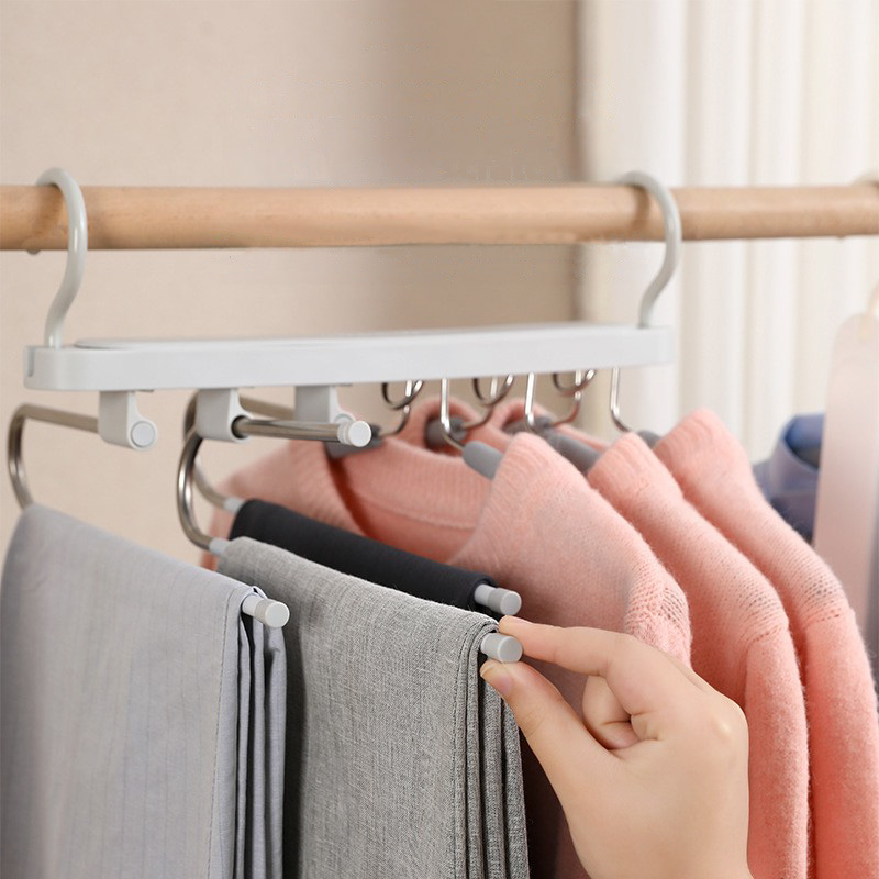 这款衣架采用可折叠结构,可根据您的收纳需求进行调整——展开后,其多根坚固的横杆可提供充足的空间,可安全悬挂多条裤子、长裤或裙子。每根横杆上的防滑表面可防止衣物滑落,保持衣物平整整齐。强大的承重能力确保即使在满载的情况下也能保持稳定,而光滑的边缘则可保护精致的织物免受钩破或损坏。