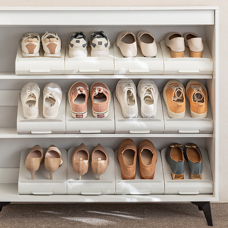 除了存放鞋子,这款多功能鞋架还能高效收纳拖鞋、折叠围巾或小饰品。其节省空间的设计在寸土寸金的城市住宅中尤为实用。鞋架略高于地面,既能防止灰尘积聚,又能轻松挑选。