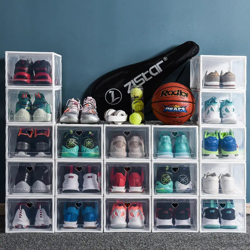 互锁堆叠系统专为稳定性而设计,可形成牢固的垂直立柱,即使多个鞋盒堆叠在一起也不会轻易倾倒。透明的前面板可立即查看鞋盒内物品,无需逐一打开寻找特定鞋子。通风孔促进空气流通,防止异味积聚,同时保持衣柜或床下整洁有序的外观。光滑的圆边设计在搬运过程中既能保护存放的物品,又能保护用户的双手。