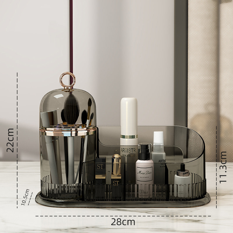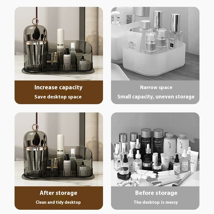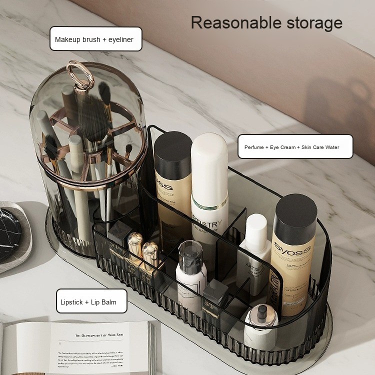 透明材质让您无需费力翻找不透明容器,所有产品触手可及。多层隔层设计,为粉底、睫毛膏、口红和粉饼等不同类别的美妆产品打造自然有序的收纳空间。耐用的塑料材质不易刮擦。不易沾染指纹,即使频繁使用也能保持其奢华外观。不使用时,流线型设计可与任何装饰风格巧妙融合,从现代简约风格到经典优雅的室内空间,无不彰显其优雅气质。