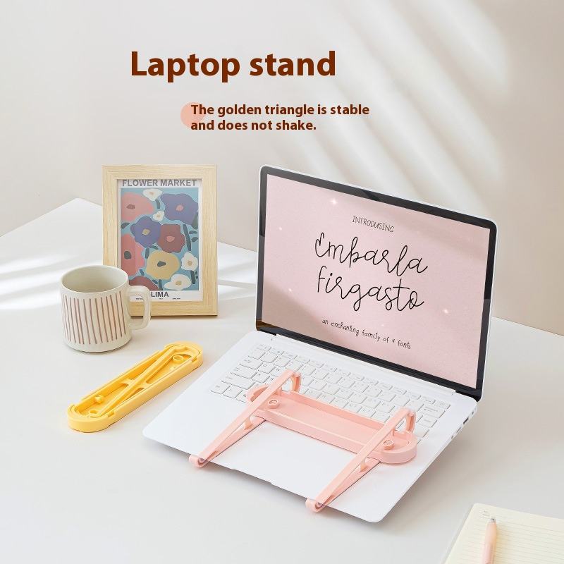 该支架由坚固的塑料制成,既轻便又耐用,非常适合在家中、办公室或外出时使用。其紧凑且可折叠确保了方便的存储和携带,可以轻松放入包中。其防滑表面和橡胶化的把手可以确保您的笔记本电脑安全地放在原处。