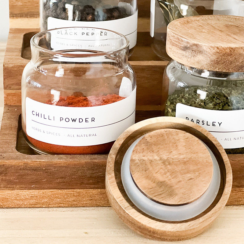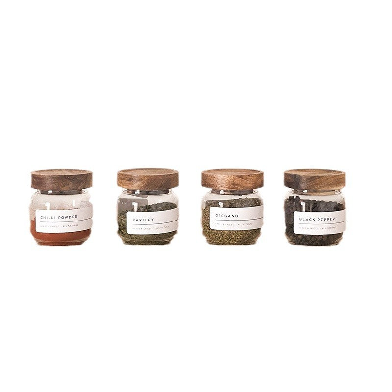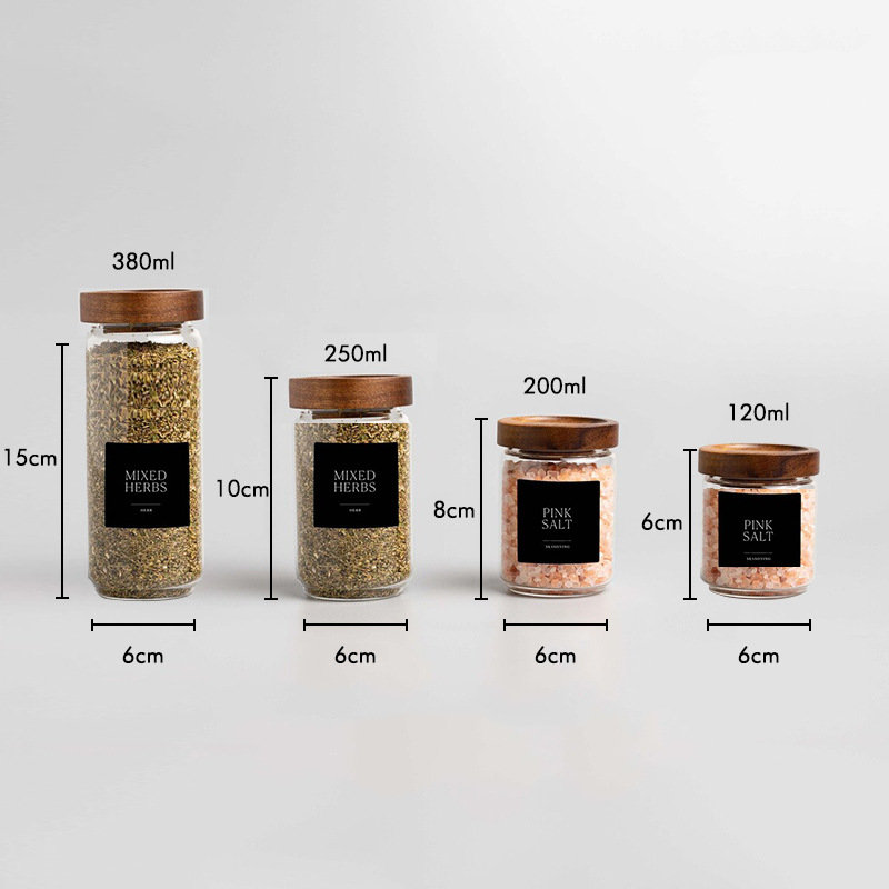 该瓶子采用优质透明玻璃制成,让您只需一眼就能识别瓶内物品,帮助您简化烹饪和准备过程。瓶盖采用食品级天然木材制成,不仅能确保密封以保持新鲜,还能为您的厨房台面或储藏室增添一份温馨、自然的触感。