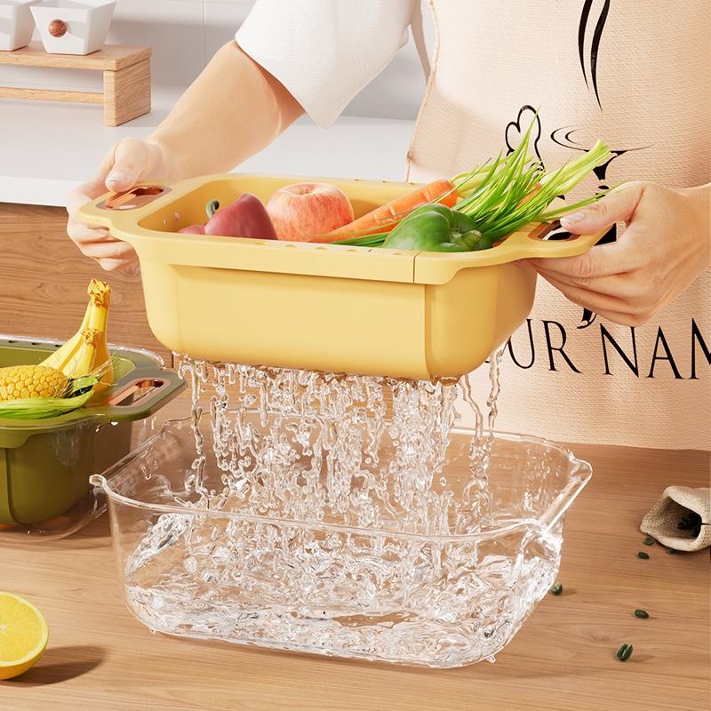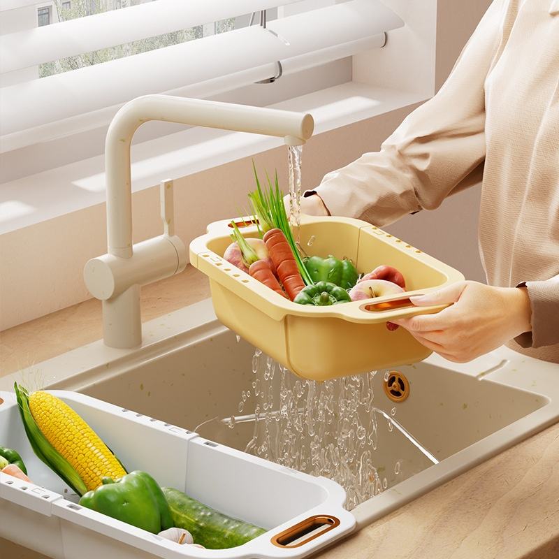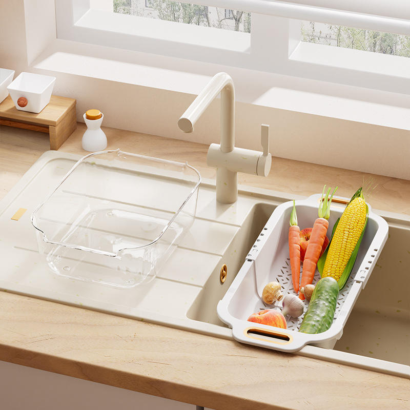 厨房伸缩式水槽塑料滤篮是一款且用户友好的产品,可增强厨房功能和清洁度。其多功能性使其适用于各种家务任务,从食品准备到洗碗,为日常厨房需求提供实用的。