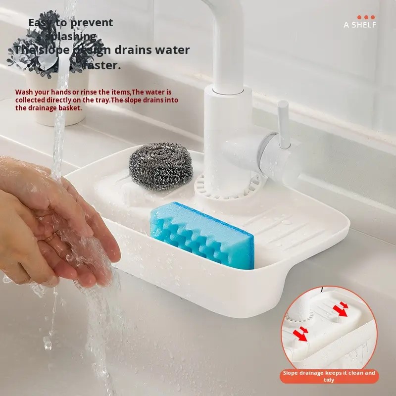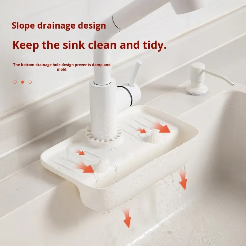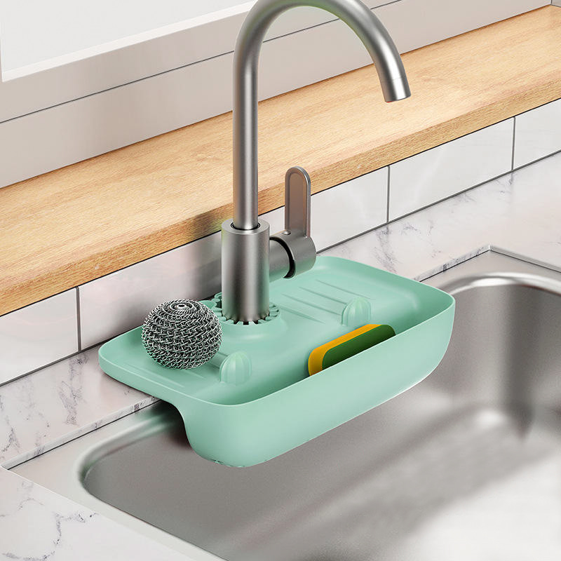 厨房水槽沥水架硅胶水龙头垫采用吸盘系统,可牢固吸附在水龙头上,节省空间,无需任何安装。其设计可轻松沥干碗碟、餐具和其他厨房用具上的水,保持台面干爽整洁。