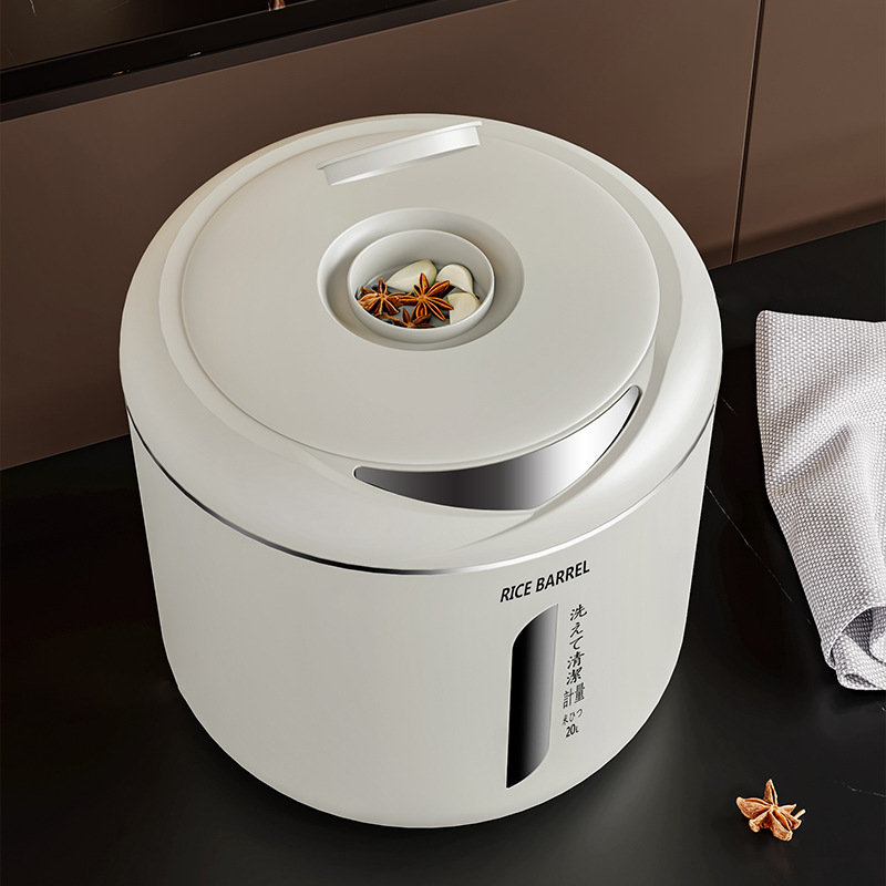 防潮米盒的圆形设计和坚固的塑料结构使其成为寻求升级食品储存解决方案人士的明智之选。它简单易用,有效的设计确保您的食物保持新鲜更长时间,同时其美观的外观增强了厨房的外观。