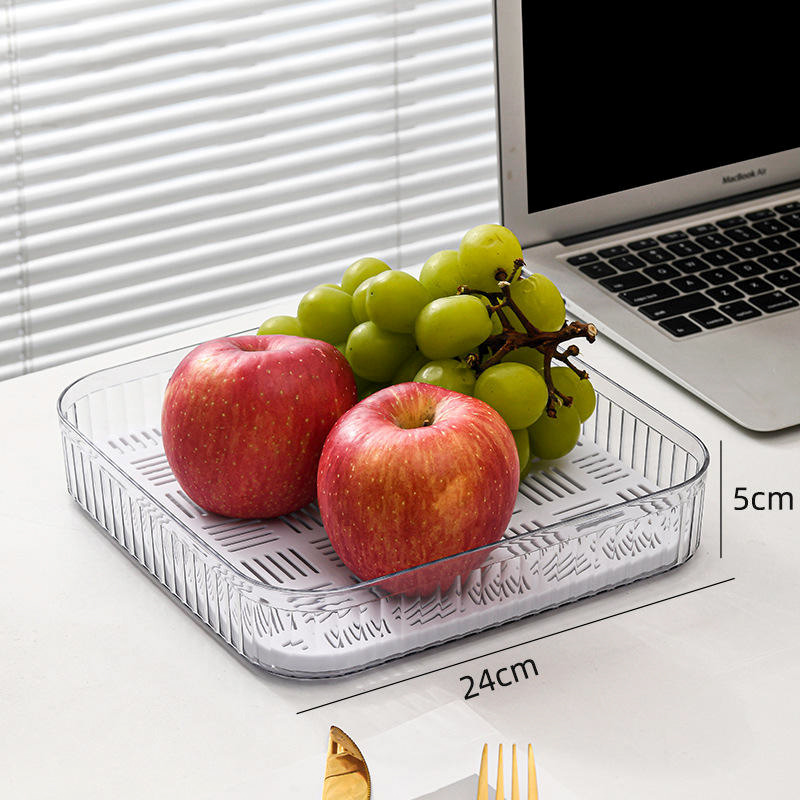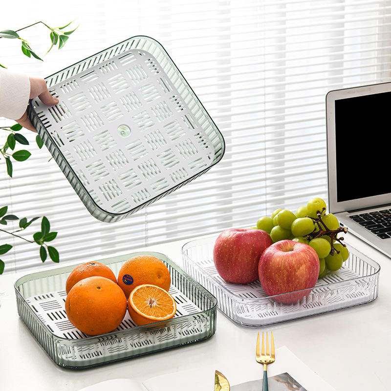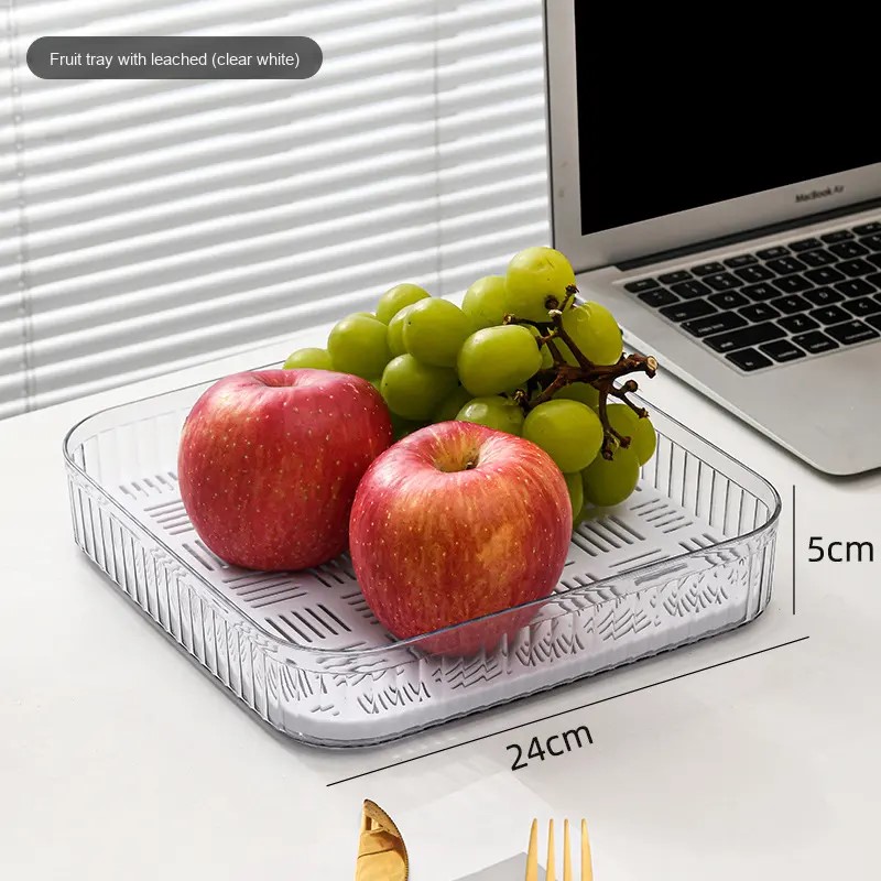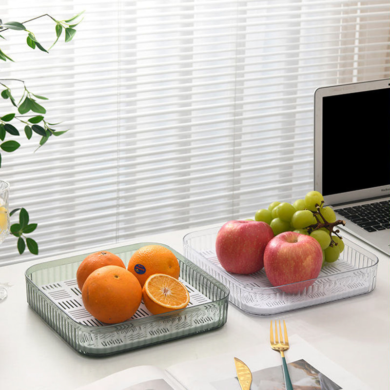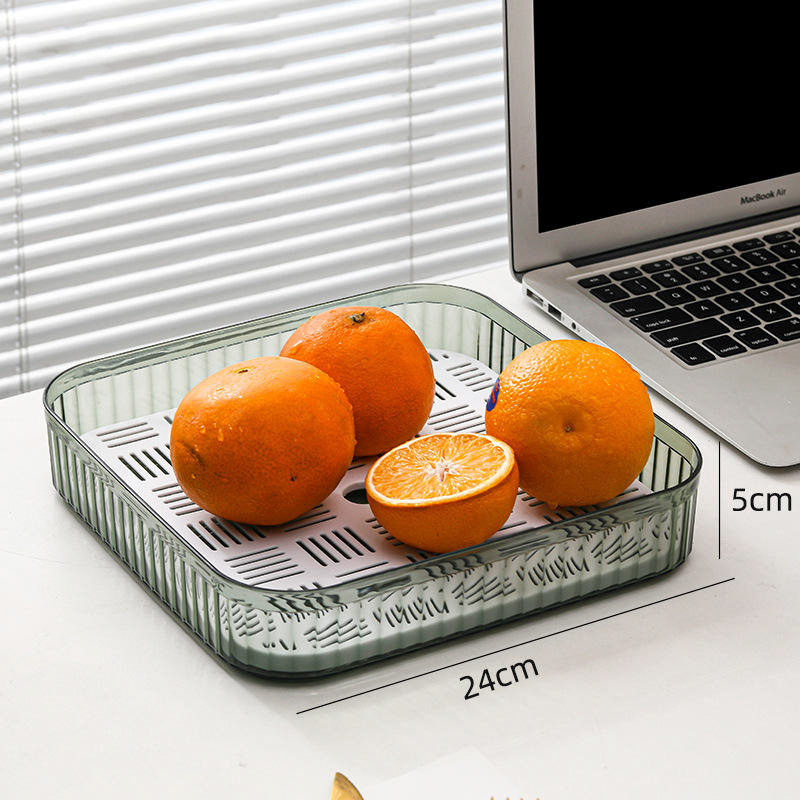 塑料双层水果盘沥水架采用一次性设计,非常适合那些喜欢卫生便捷地存放和沥干洗净水果的人。其双层结构可有效利用空间,顶层用于盛放水果,底层用于收集多余的水分。